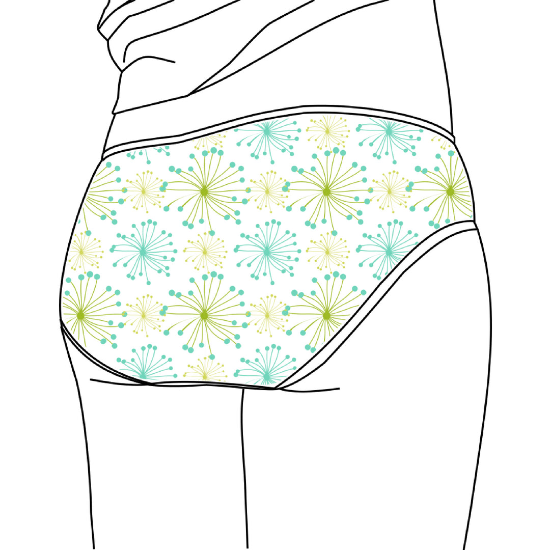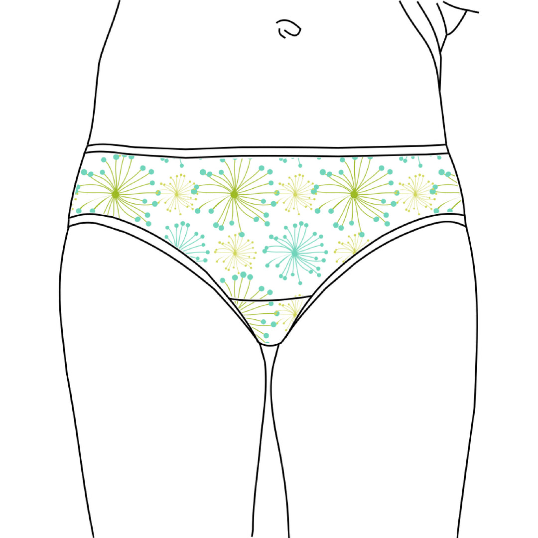 The Ladies Knickers pattern is a medium rise ladies hipster underpants pattern. It features front, instead of side seams so that you can easily use a feature fabric and get creative with decorative trims.