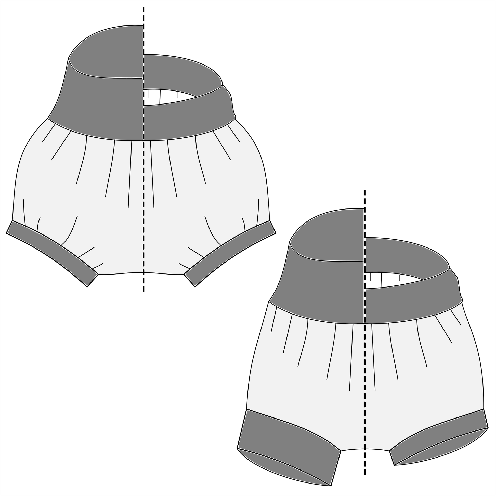 Fabrics: The main body of the bloomers/shorts can be made with any lightweight knit fabric. The waistband and cuffs need to be made from a knit fabric with 75% to 100% stretch, and recovery of 95% or more.