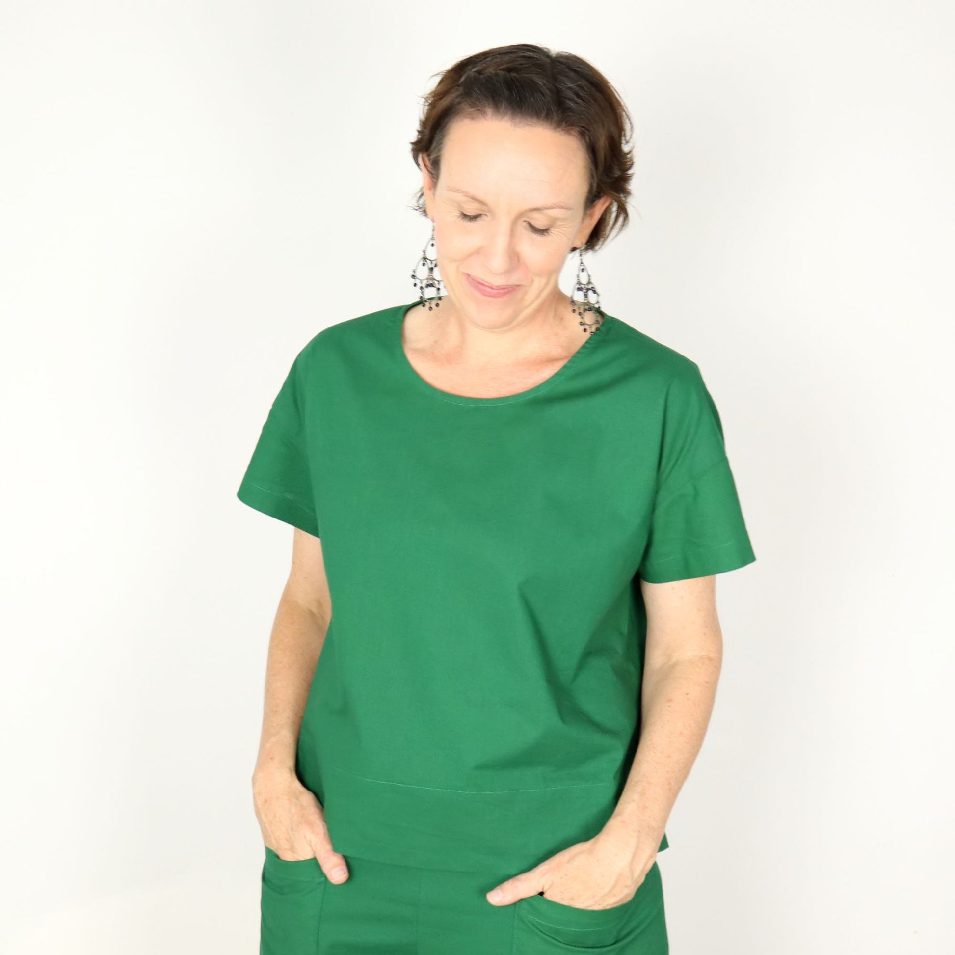 A chic, easy-to-sew wardrobe staple, this boxy woven tee is designed with beginners in mind. Its relaxed silhouette offers effortless style, while subtle French darts in the larger cup sizes add just the right amount of shaping for a polished fit. Perfect for showcasing your favourite fabrics, it’s a quick, satisfying make you’ll reach for again and again.
