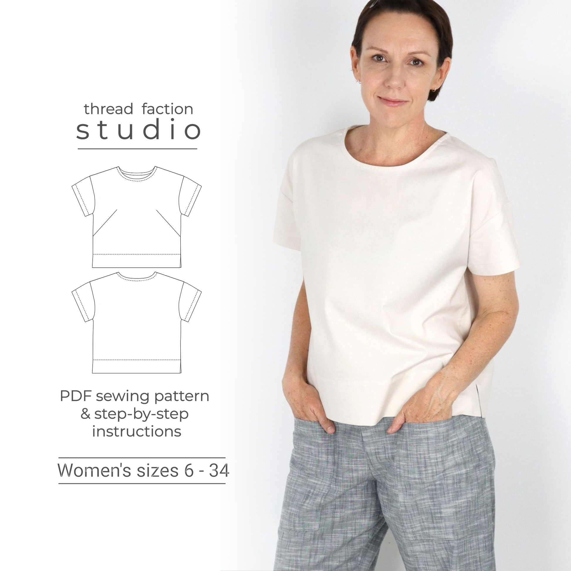This is a pdf sewing pattern. You can print this pattern off your home printer and sew up this great boxy tee.