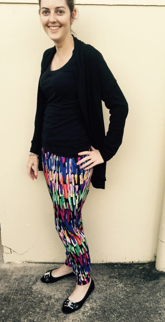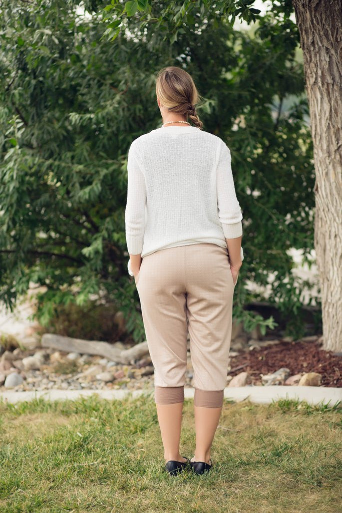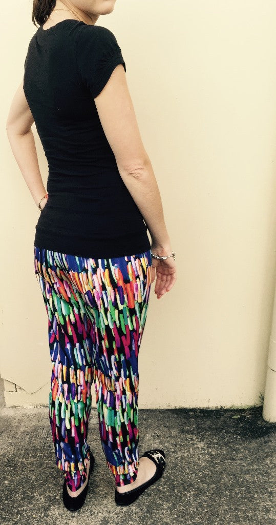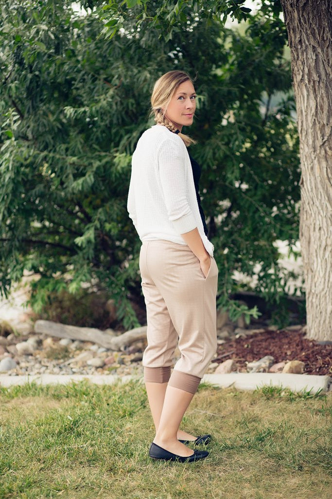Perfect for trendy jogging pants, comfy lounge pants, drape-y slouch pants for wearing with heels, stretch shorts, capris or PJ pants. This is a super flexible pattern and a nice quick sew, perfect for beginners (and everyone else).