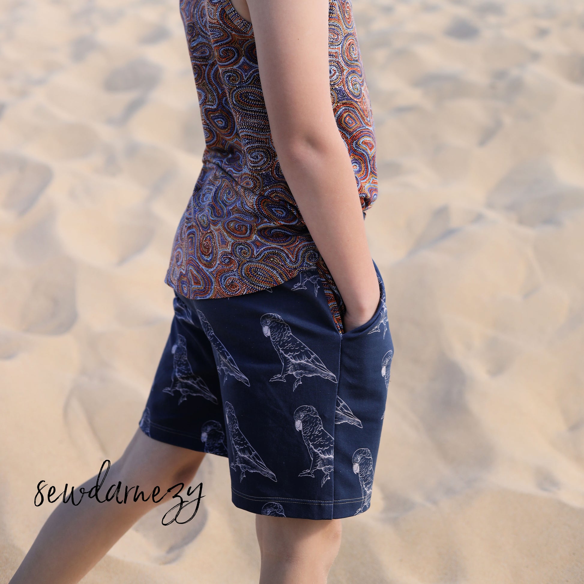 This is a pdf sewing pattern. You can print it off your home printer and sew up these brilliant shorts.