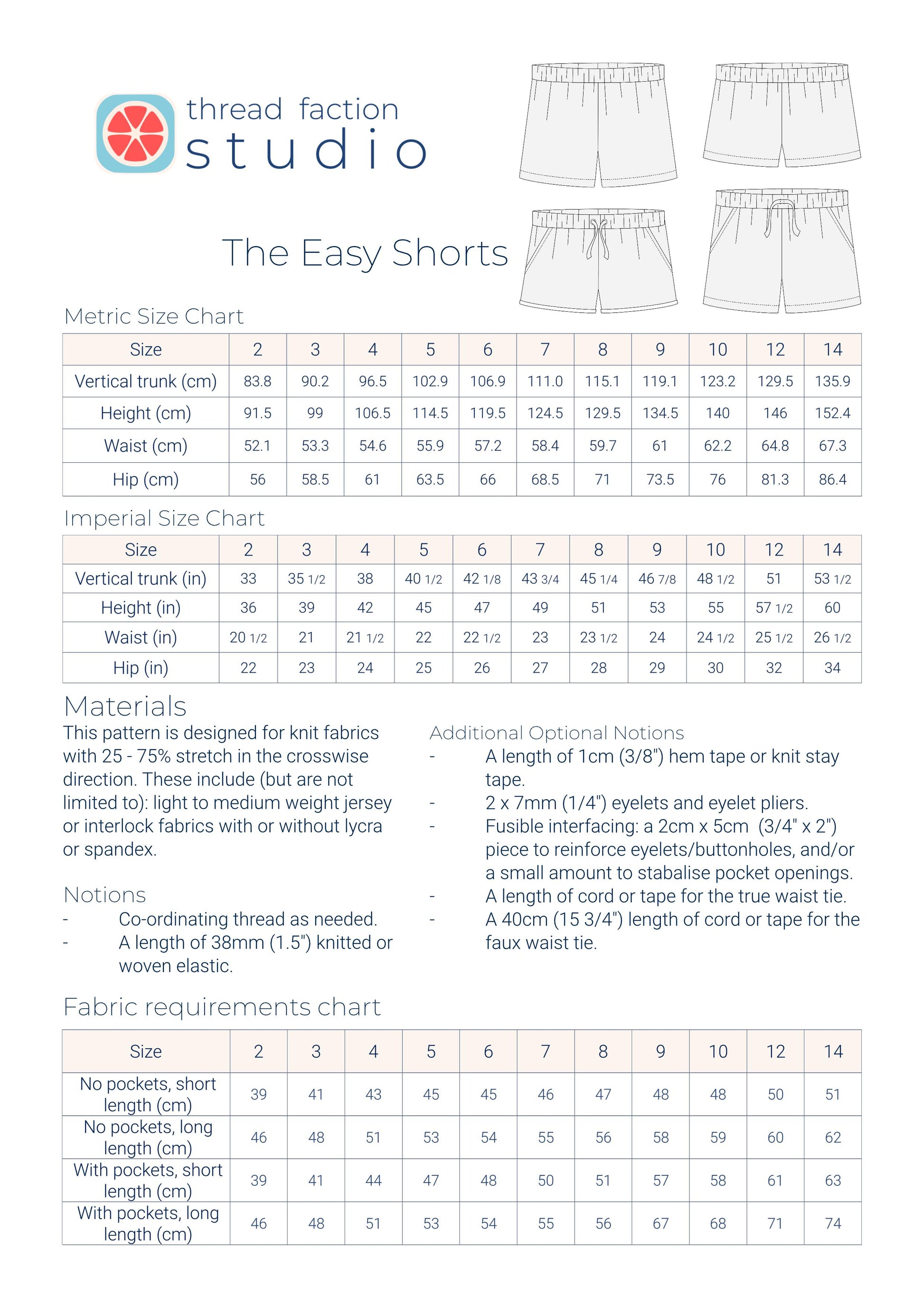 Note: Our women's patterns are drafted for a standard height, but instructions on how to customize your pattern to suit any height are included with all of our patterns.