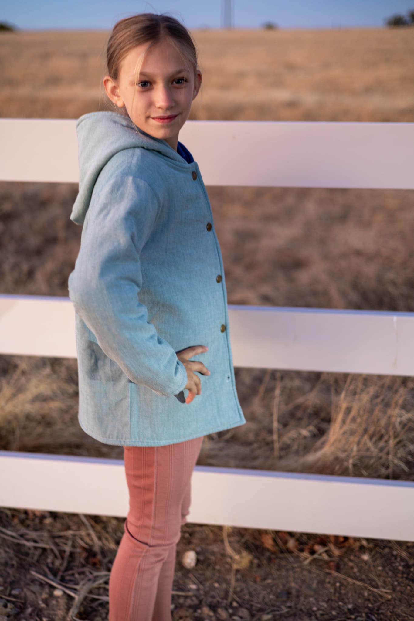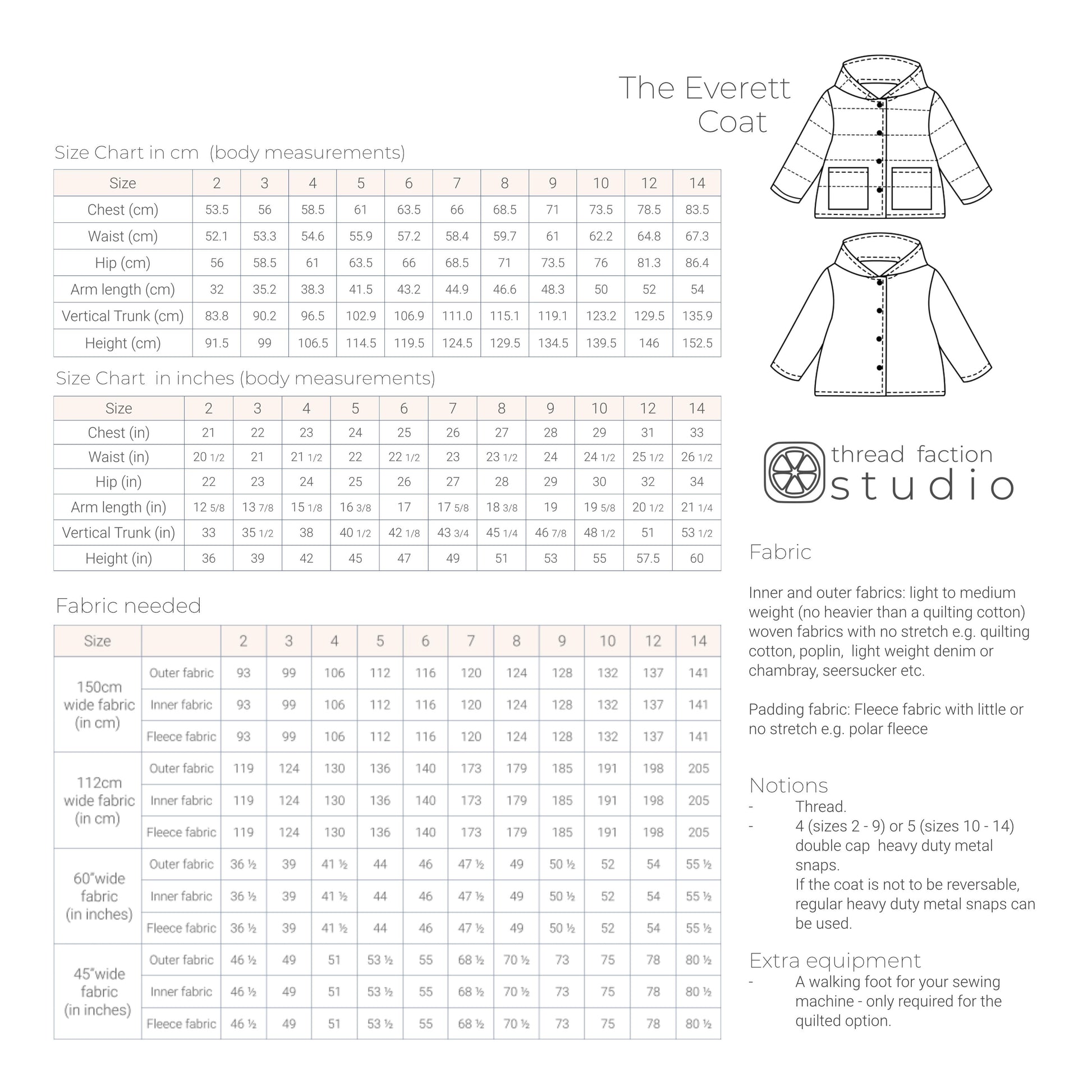 Notions: 4 (sizes 2 - 9) or 5 (sizes 10 - 14) double cap heavy duty metal snaps. If the coat is not to be reversible, regular heavy duty metal snaps can be used.