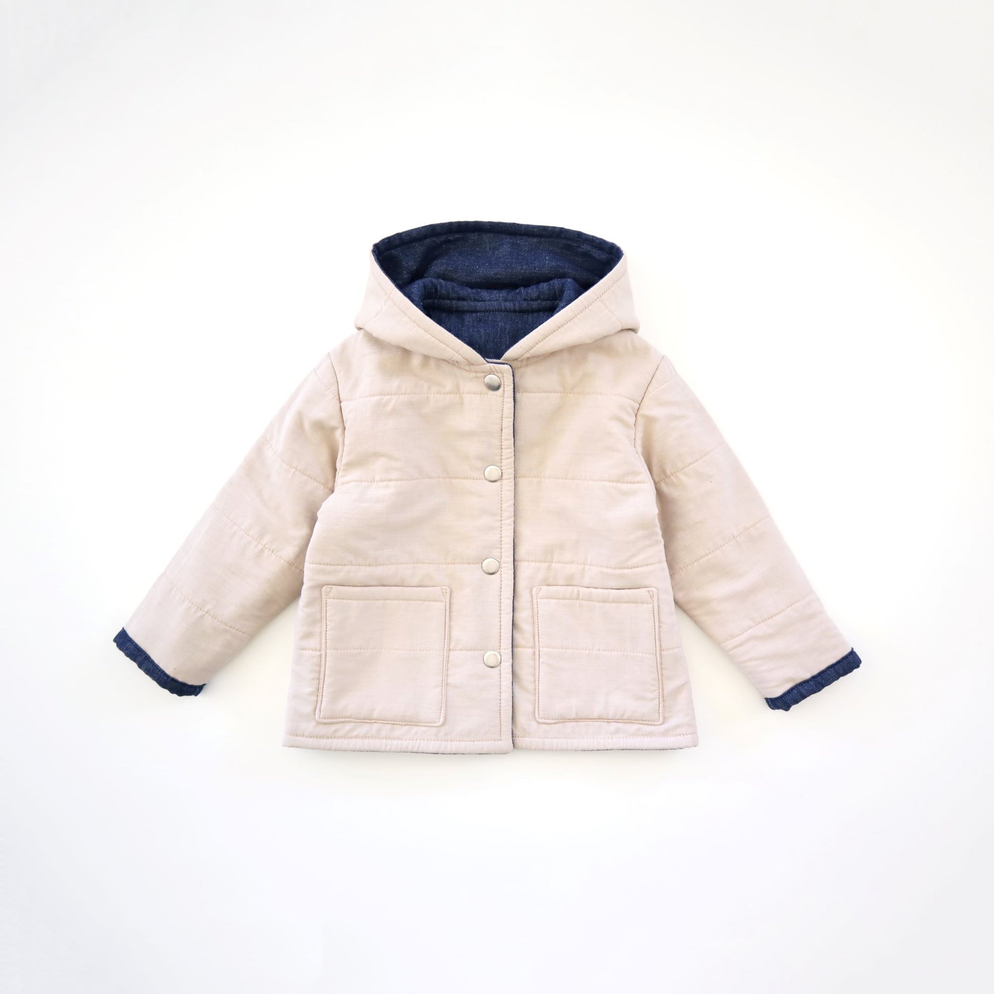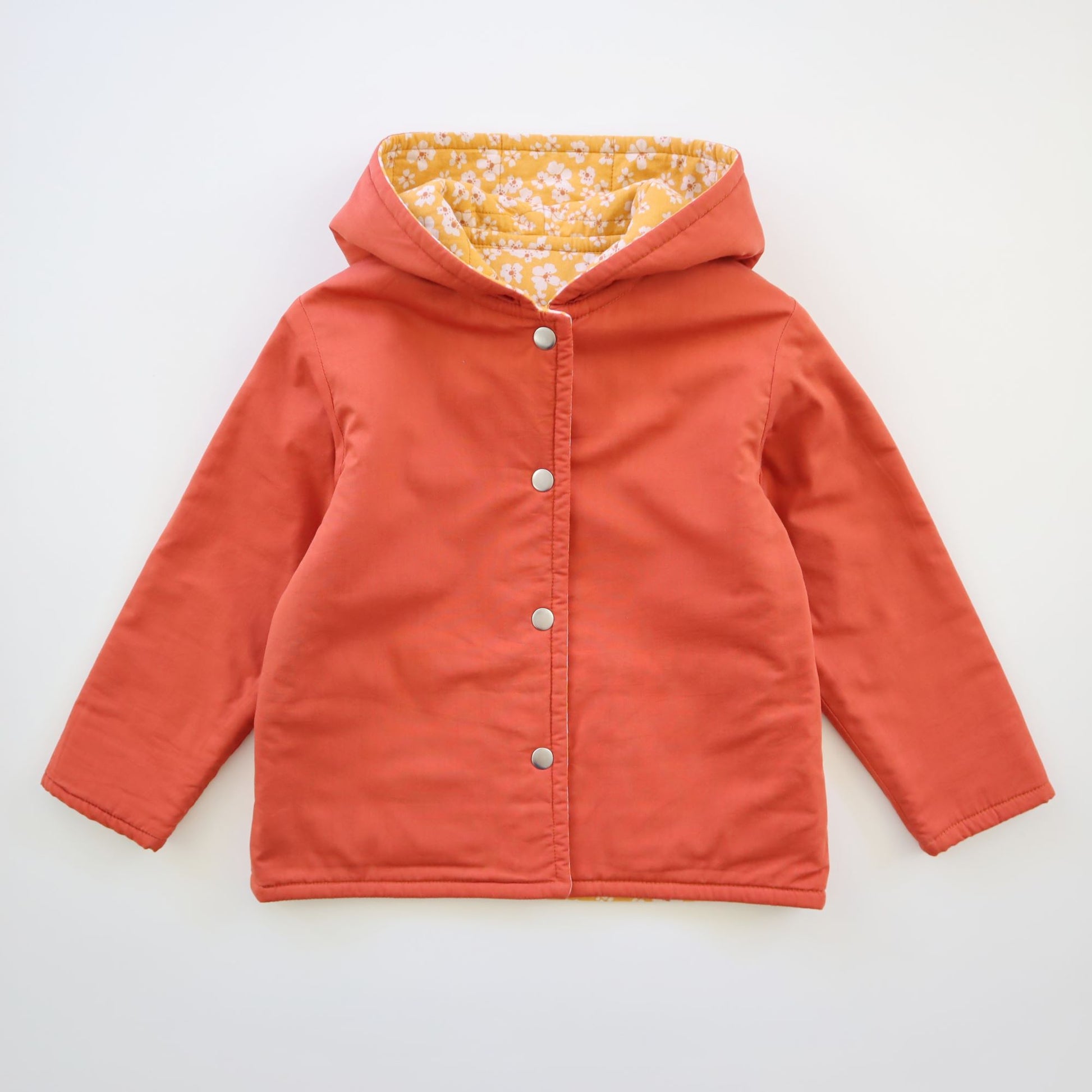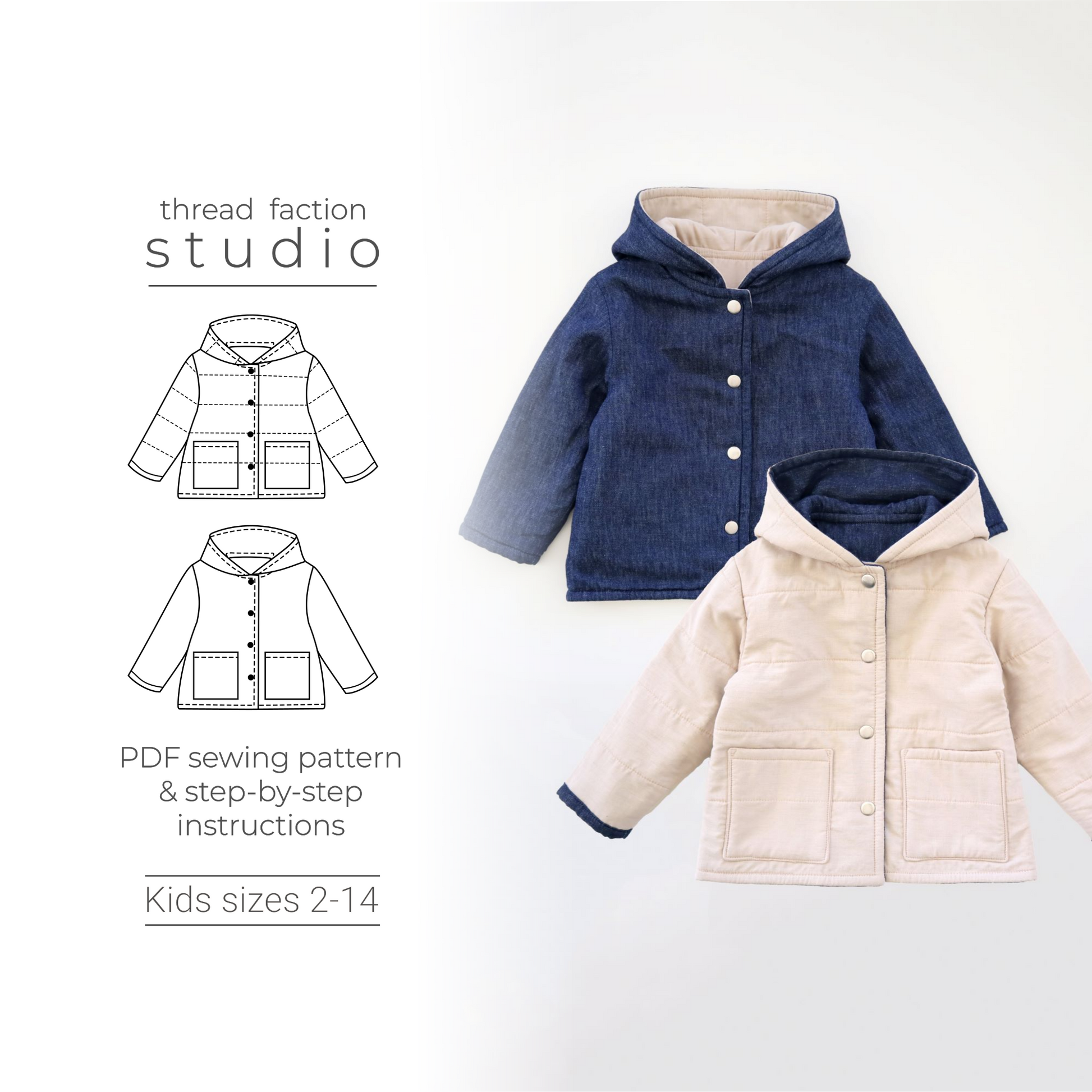 This is a pdf sewing pattern. You can print it from your home printer and sew up this easy-to-sew, reversible, machine washable, kids padded jacket.