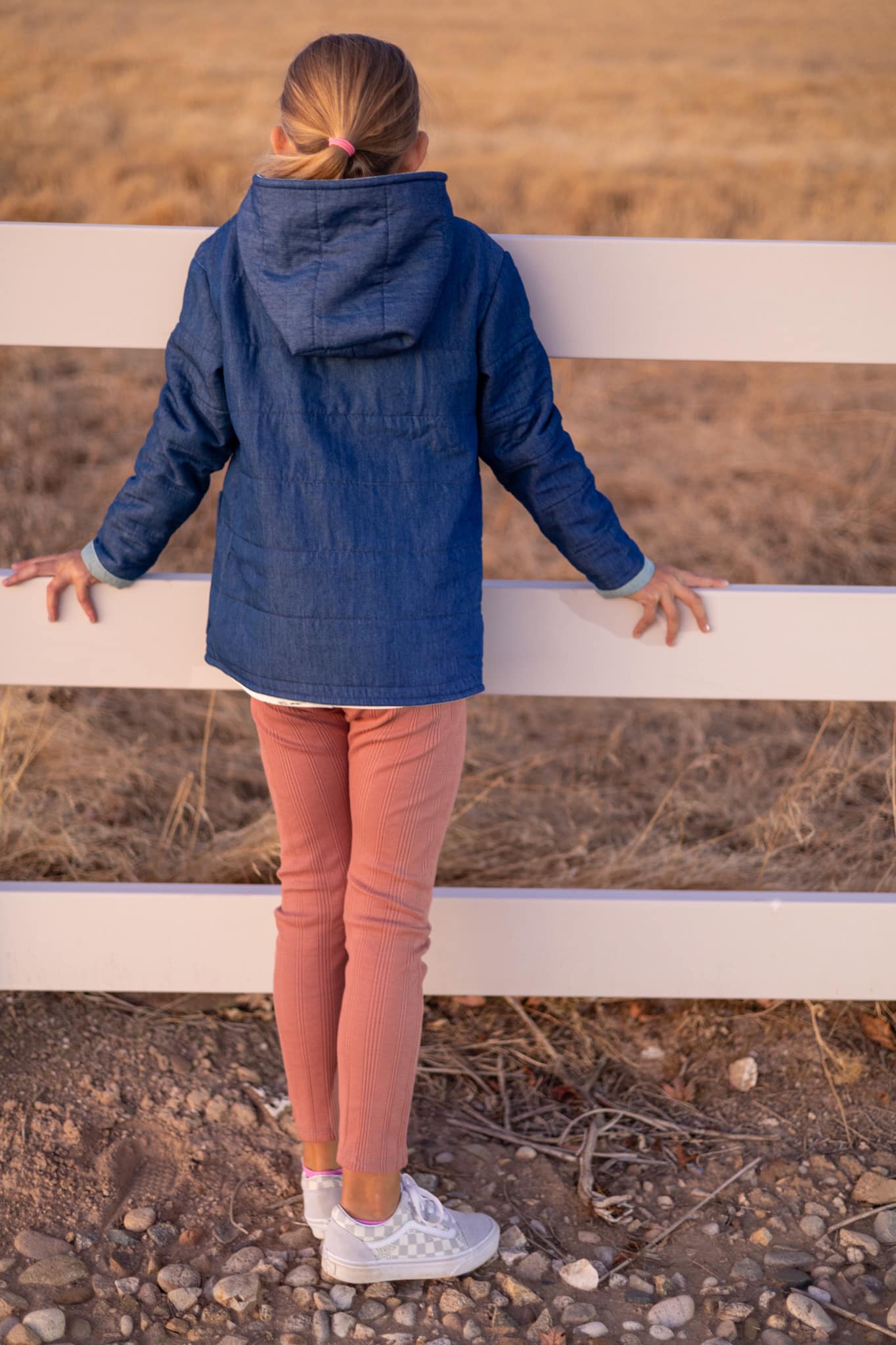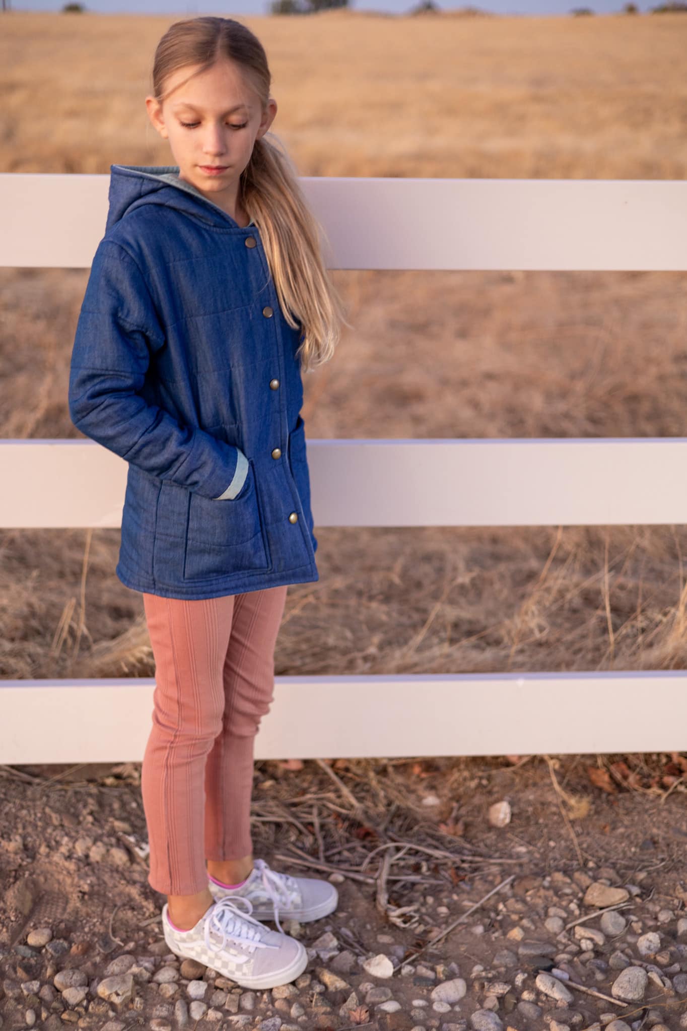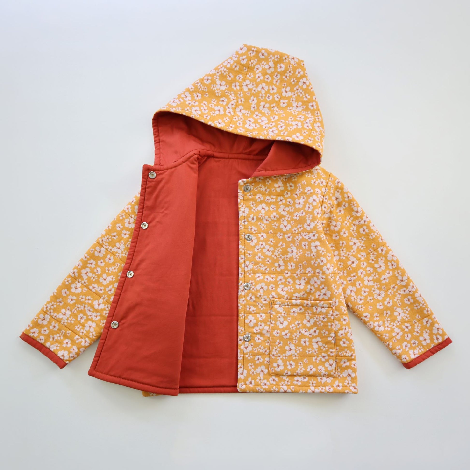This is a pdf sewing pattern. You can print it from your home printer and sew up this easy-to-sew, reversible, machine washable, kids padded jacket.