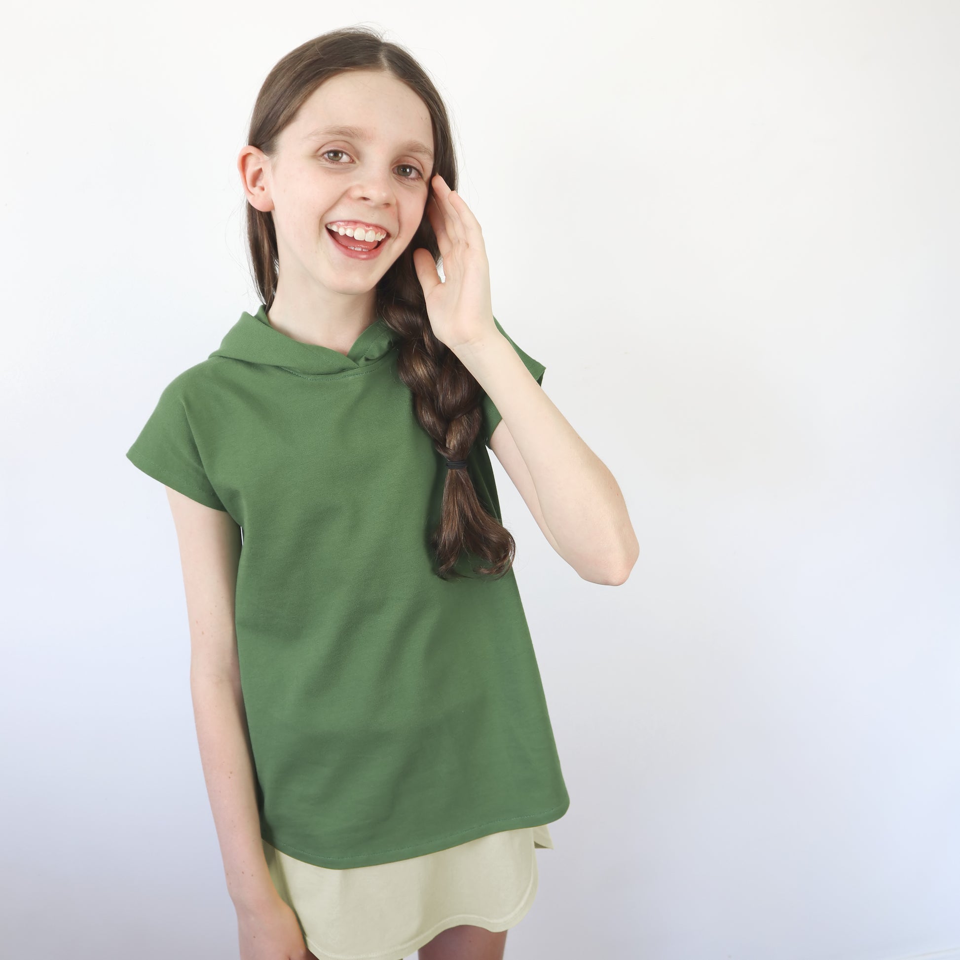 - 2 neckline options: a hood or a standard neckband