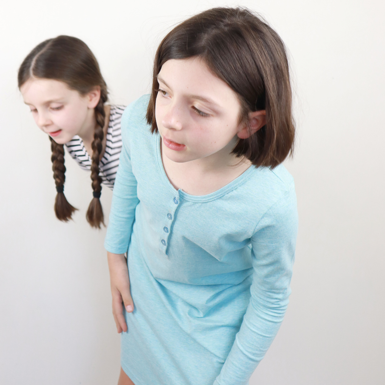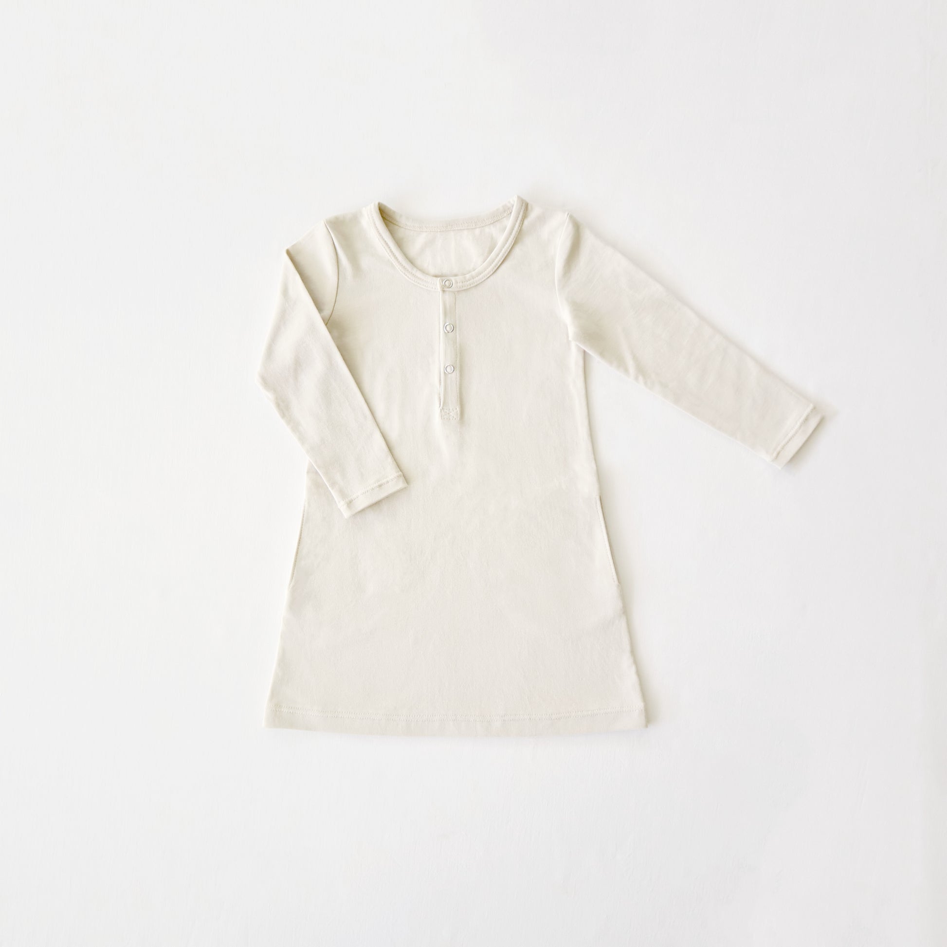 - Button (or snap) half placket and bound neckline.