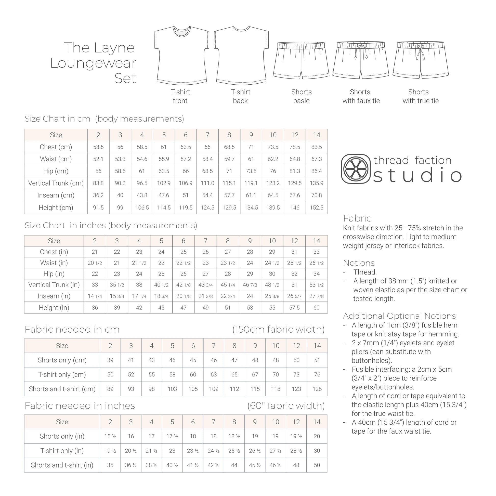 Notions (optional): A length of 1cm (3/8") fusible hem tape or knit stay tape for hemming
