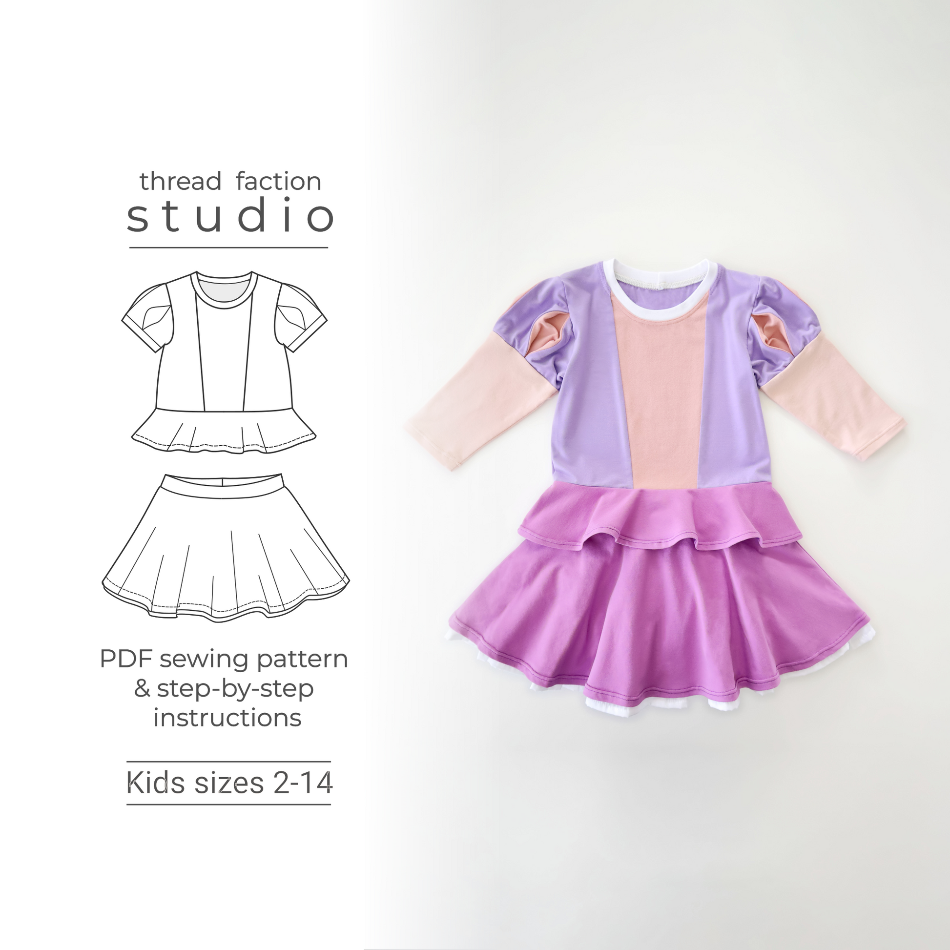 This is a pdf sewing pattern bundle. You can print these patterns off your home printer and sew up this gorgeous petticoat skirt and peplum top set.