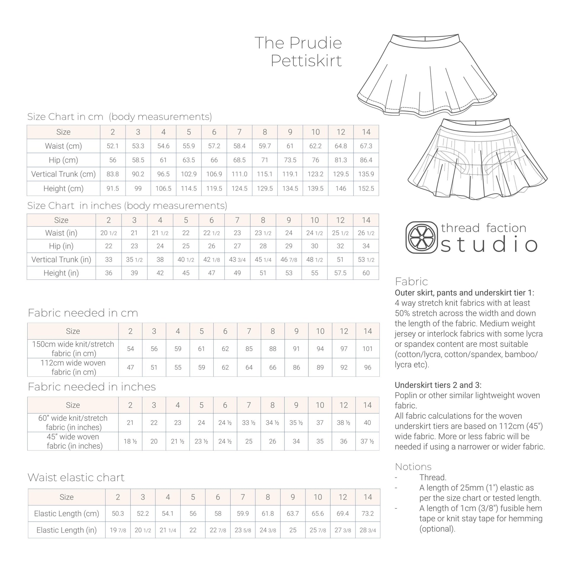Outer skirt, pants and underskirt tier 1: 4 way stretch knit fabrics with at least 50% stretch across the width and down the length of the fabric. Medium weight jersey or interlock fabrics with some lycra or spandex content are most suitable (cotton/lycra, cotton/ spandex, bamboo/lycra etc).