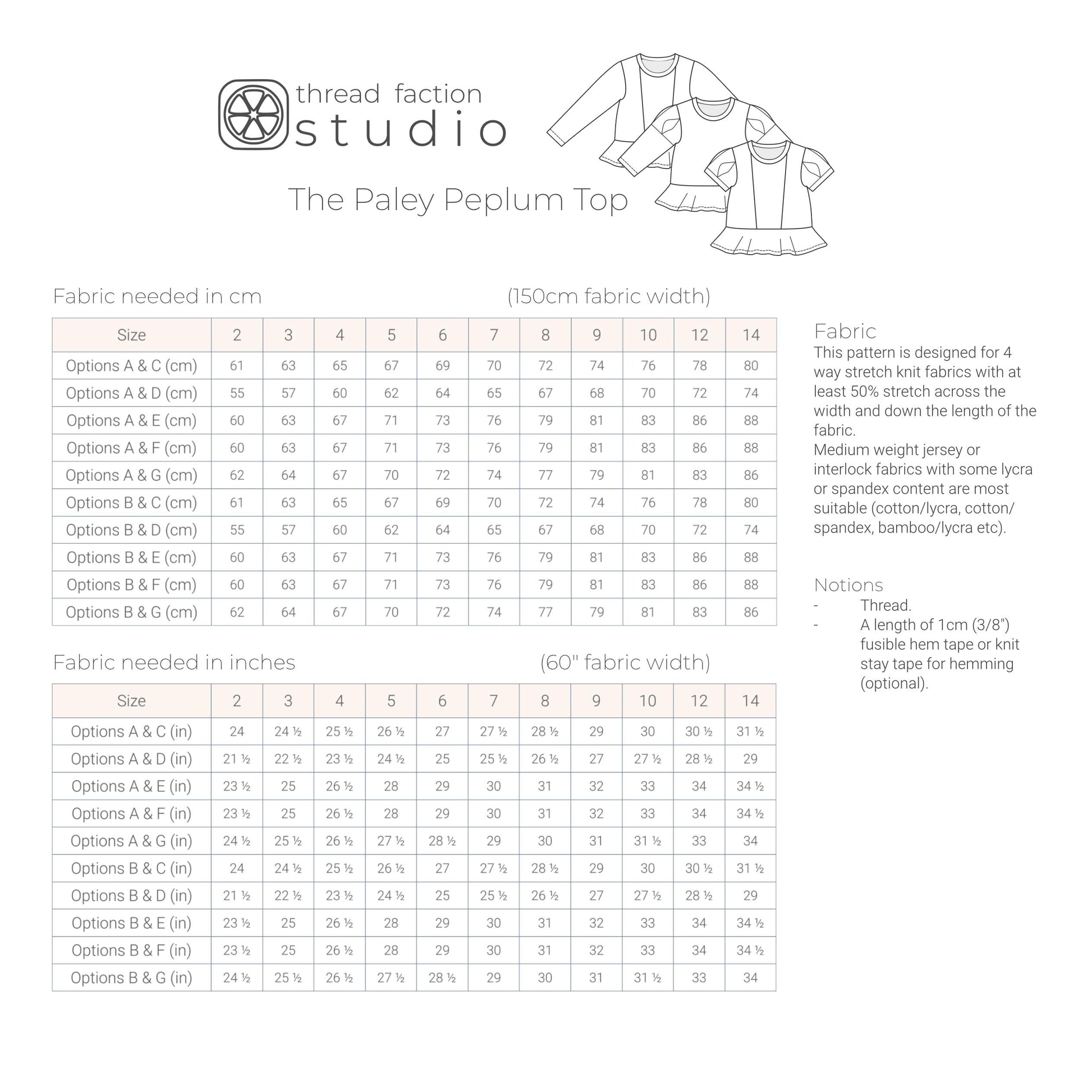 Fabrics: This pattern is designed for 4 way stretch knit fabrics with at least 50% stretch across the width