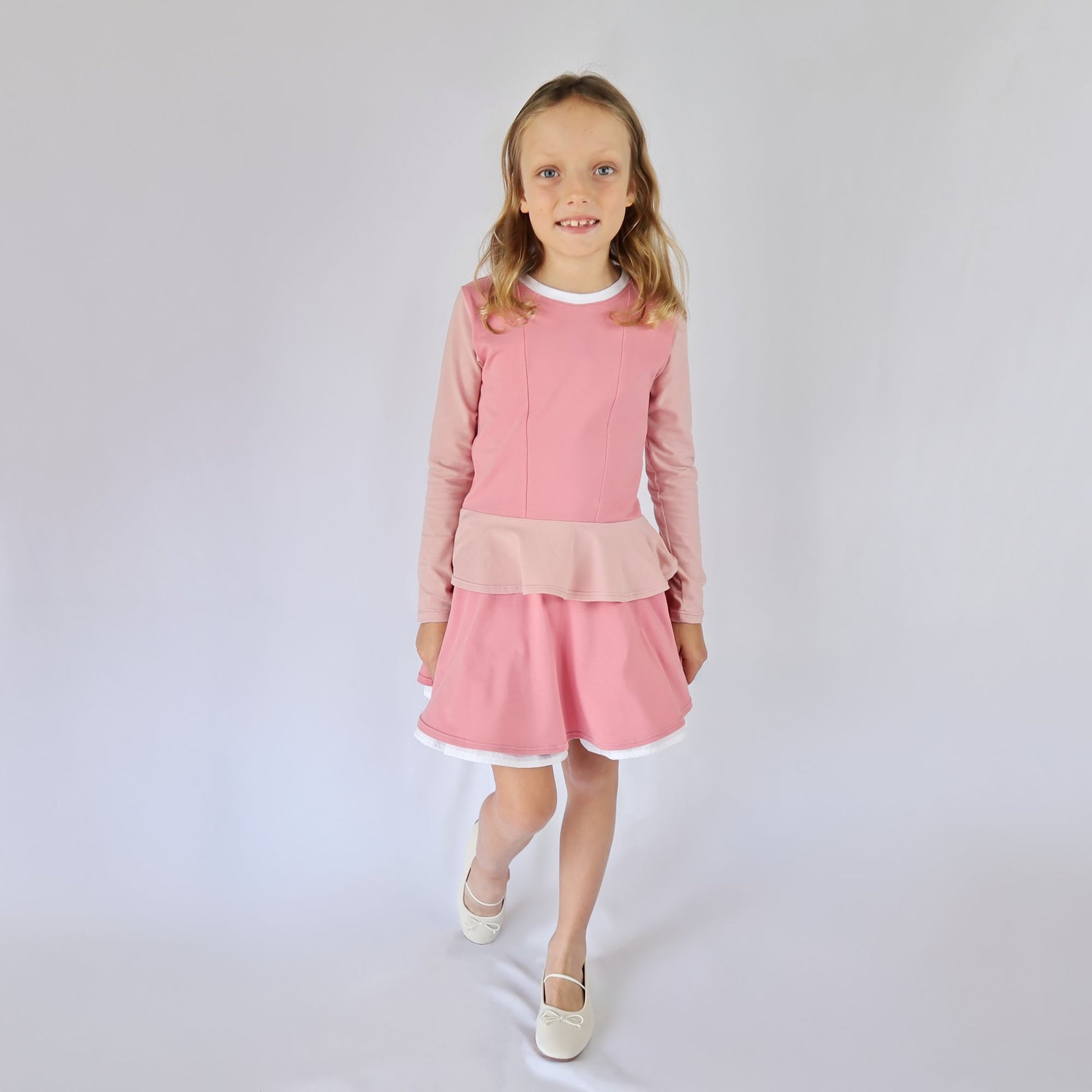 Our models are wearing the Paley Peplum with our Prudie Pettiskort. Both of these patterns are included in this bundle.