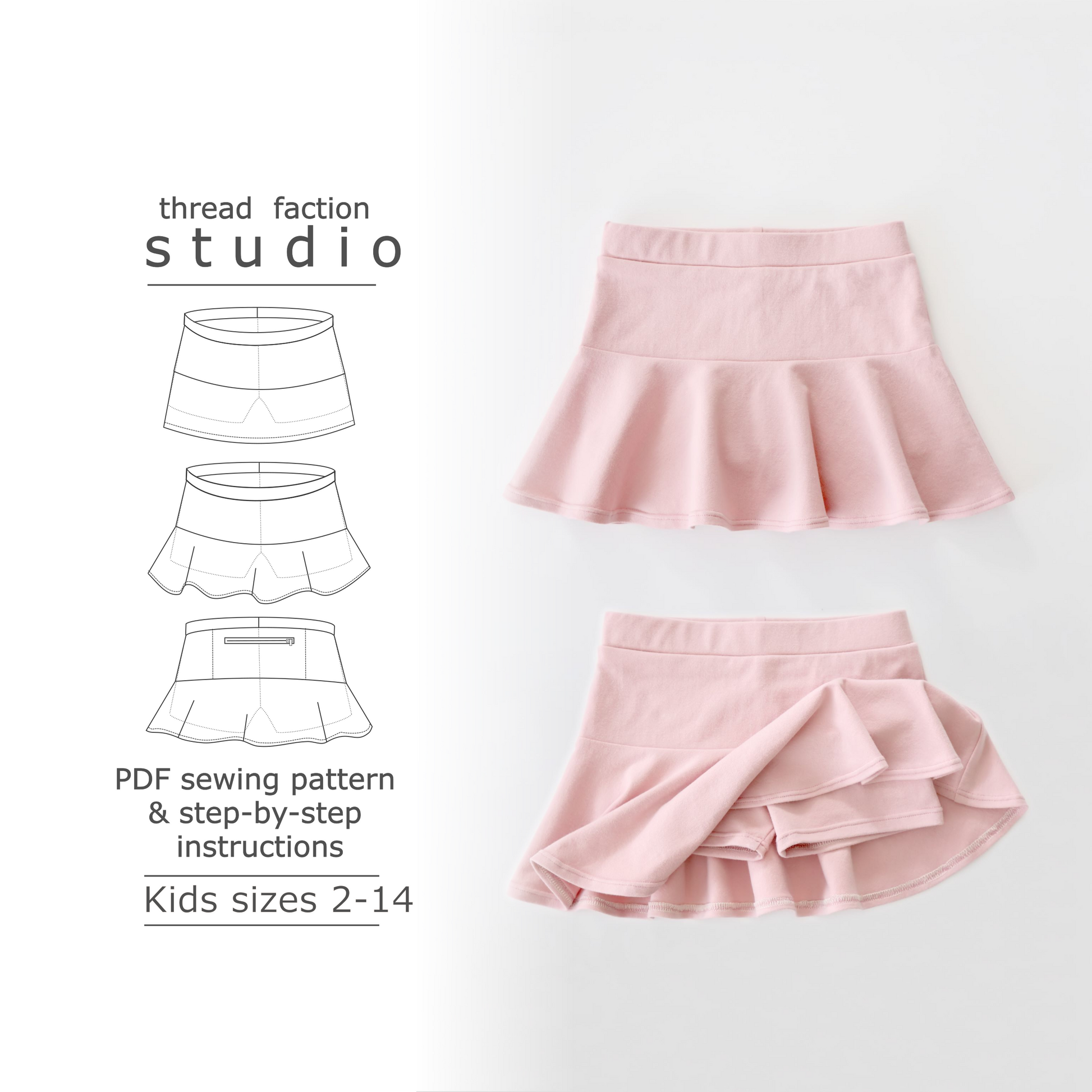 This is a pdf sewing pattern. You can print it off your home printer and sew up this great skort.