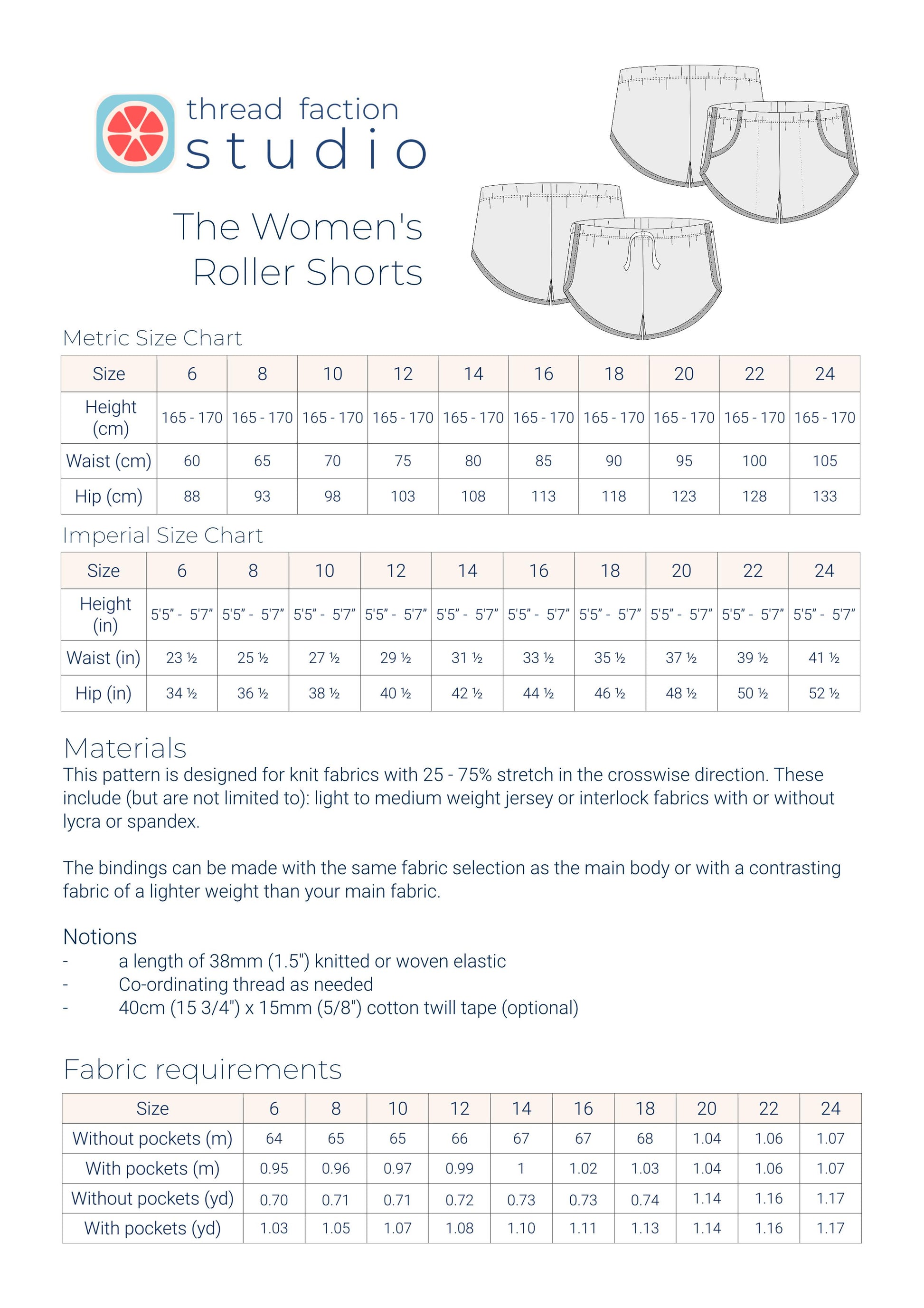 Note: Our women's patterns are drafted for a standard height, but instructions on how to customize your pattern to suit any height are included with all of our patterns.