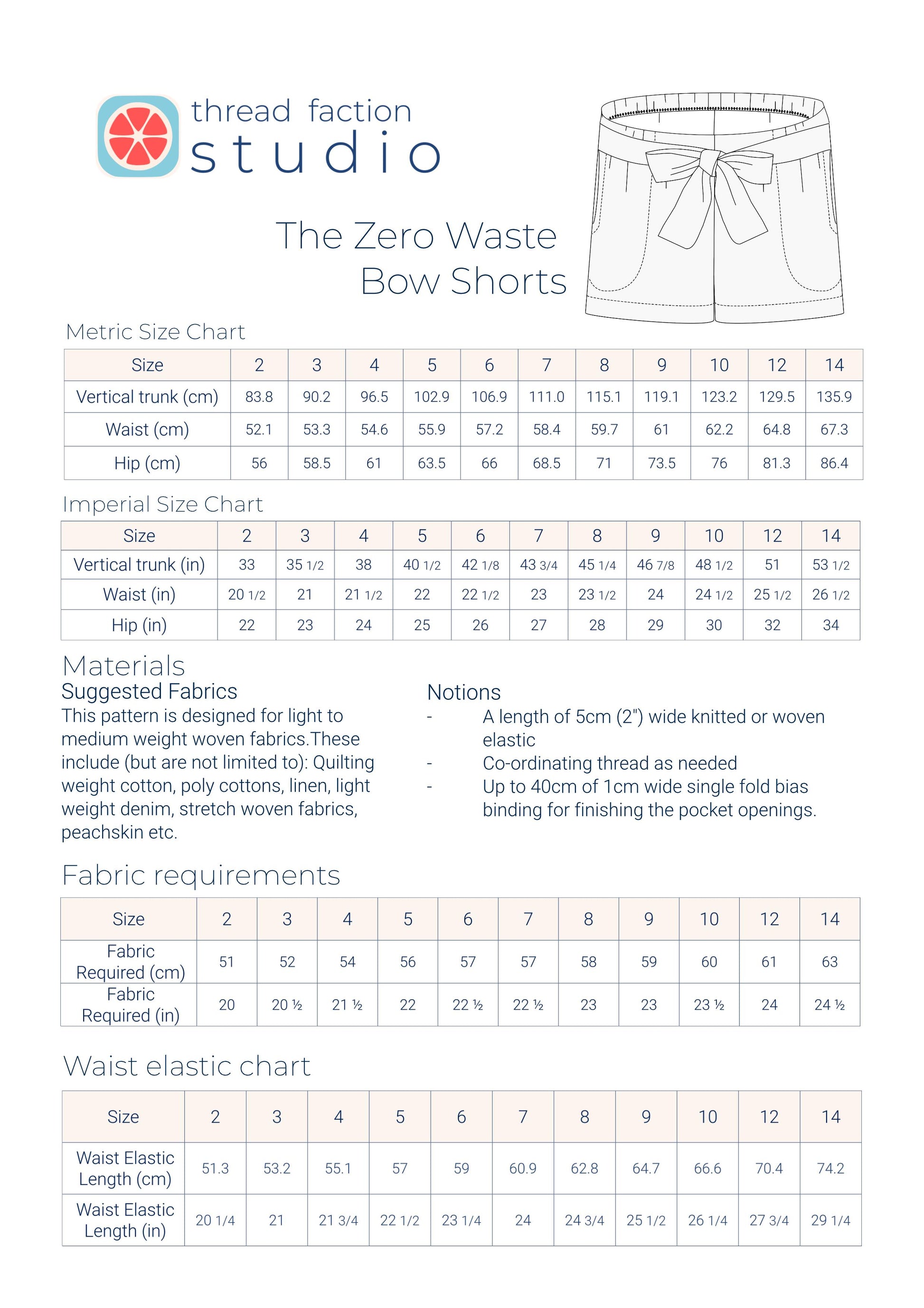- Zero Waste (this means you can cut all the pieces from a rectangle with no leftovers - a cool bonus to an already cute pattern. more about our Zero Waste stuff here: https://threadfaction.com/pages/introducing-the-thread-faction-zw-collection)