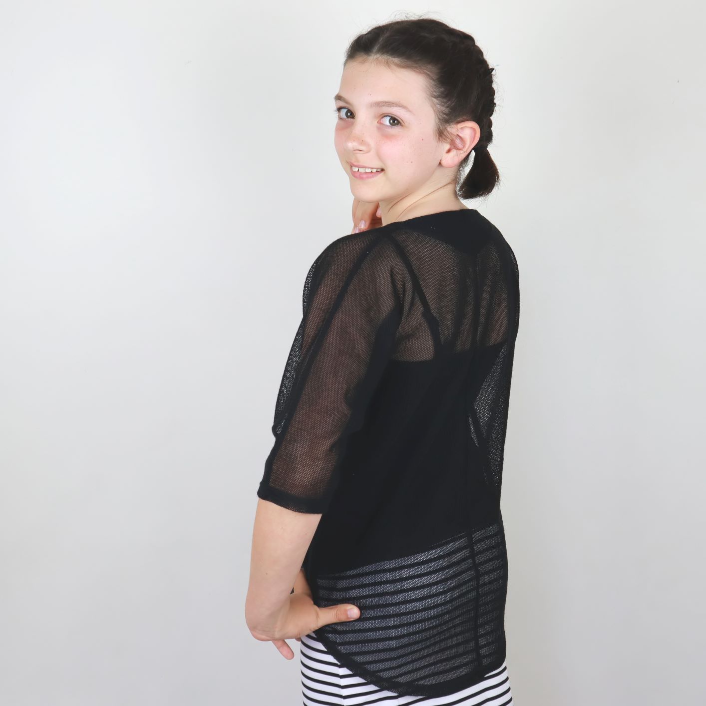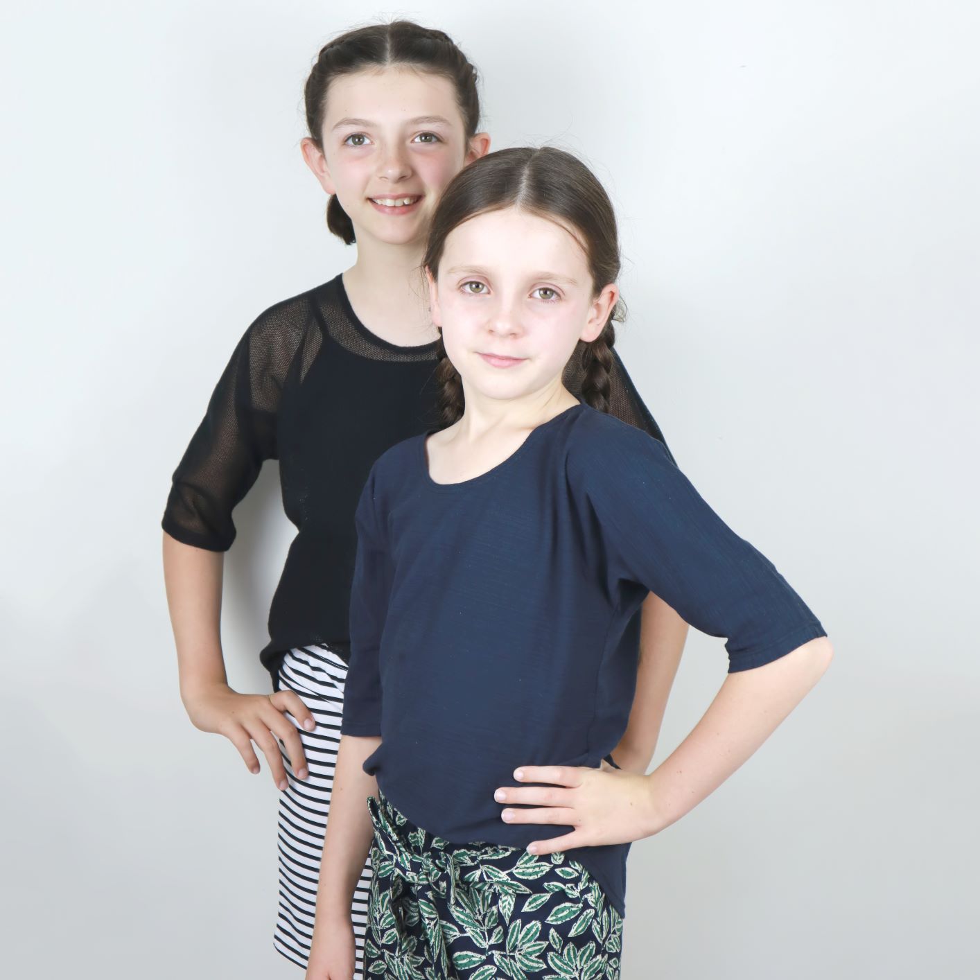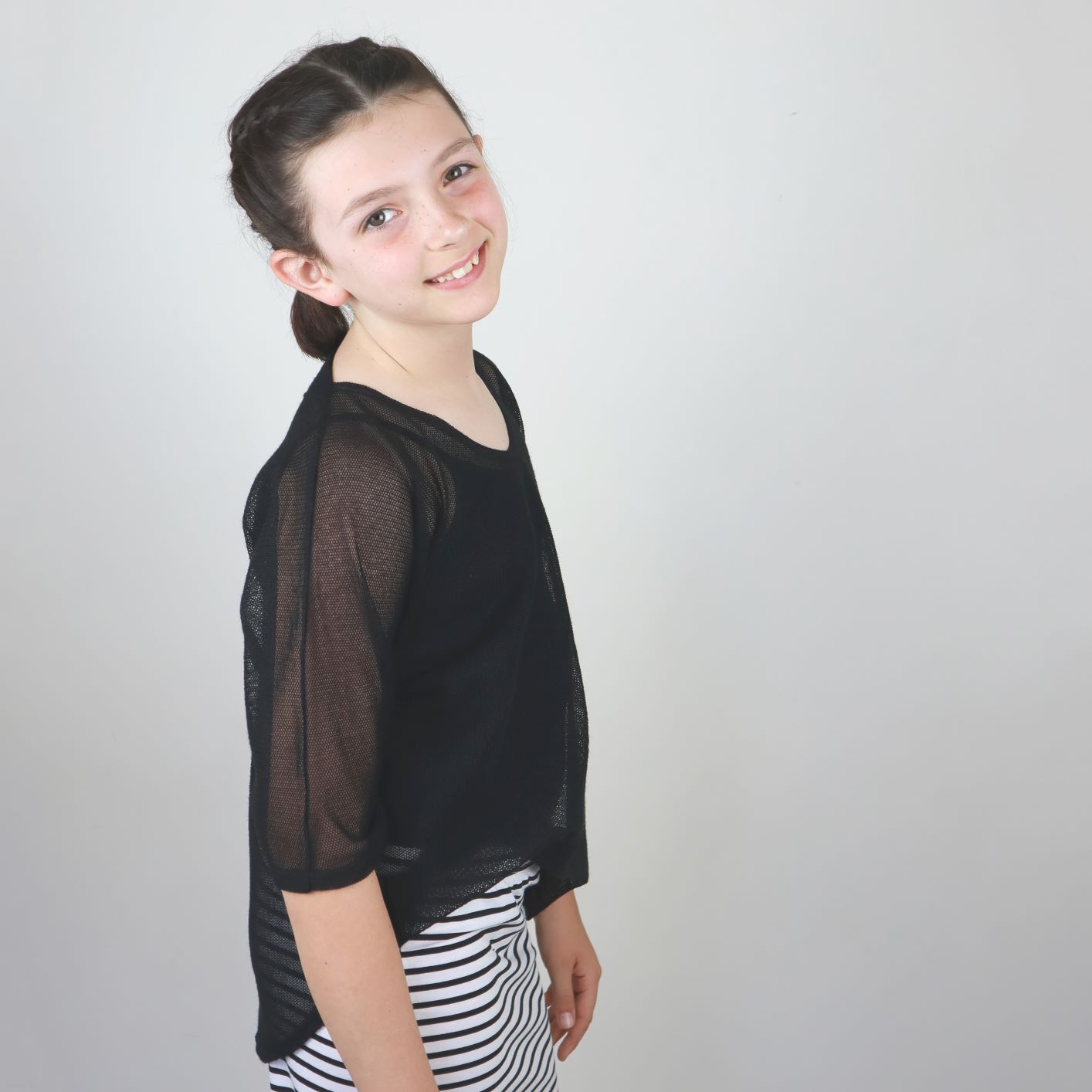 Fabrics: Knit fabrics with a soft drapey quality and with 25% stretch in the crosswise direction. Light weight jersey or sweater knit fabrics such as light weight cotton/spandex, bamboo/spandex, and double brushed poly